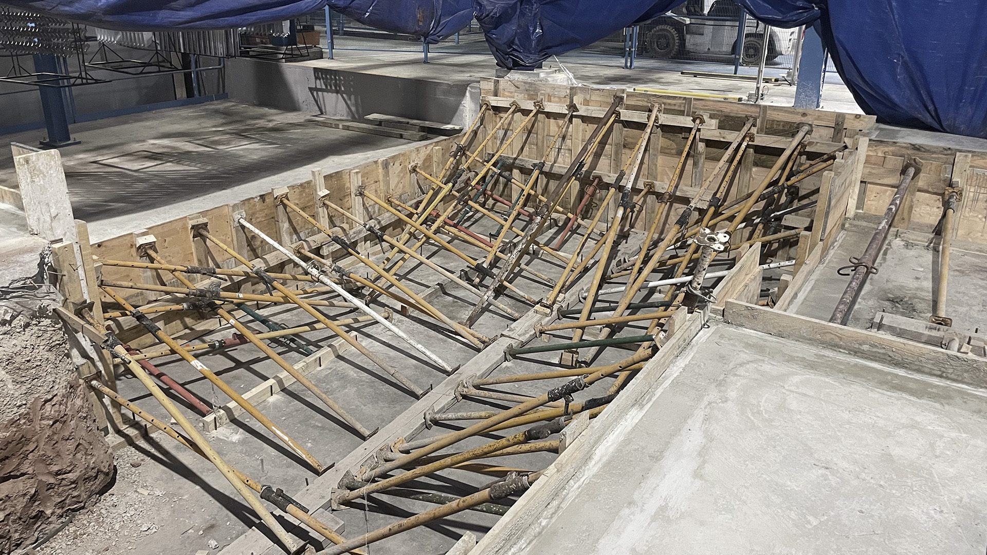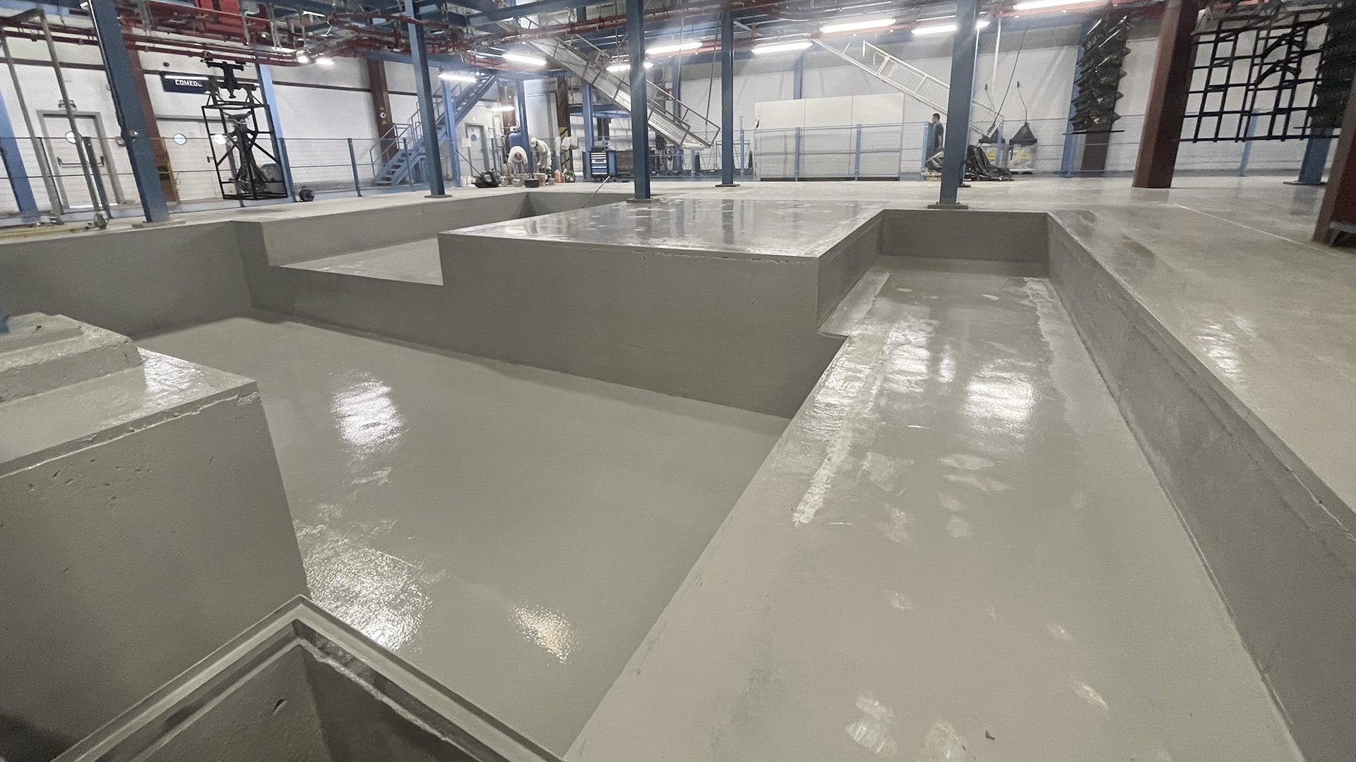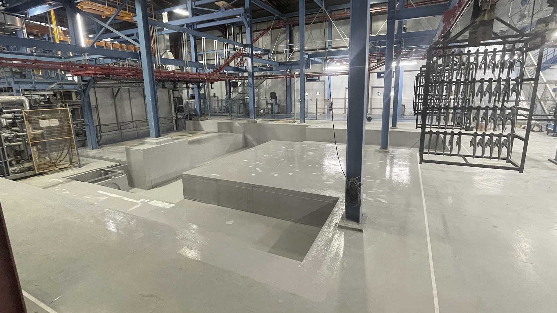 Ampliación fosos para la ampliación de una cadena de pintura en funcionamiento, sin detener la actividad, en una nave industrial. Obra realizada el 2T de 2023. Incluye trabajos de excavación, soleras de hormigón, encofrados, muros de hormigón, albañilería, alcantarillado y pintura. Obra de gran dificultad técnica y ejecución por el hecho de tener que realizar los trabajos de construcción con la cadena de pintura en funcionamiento.